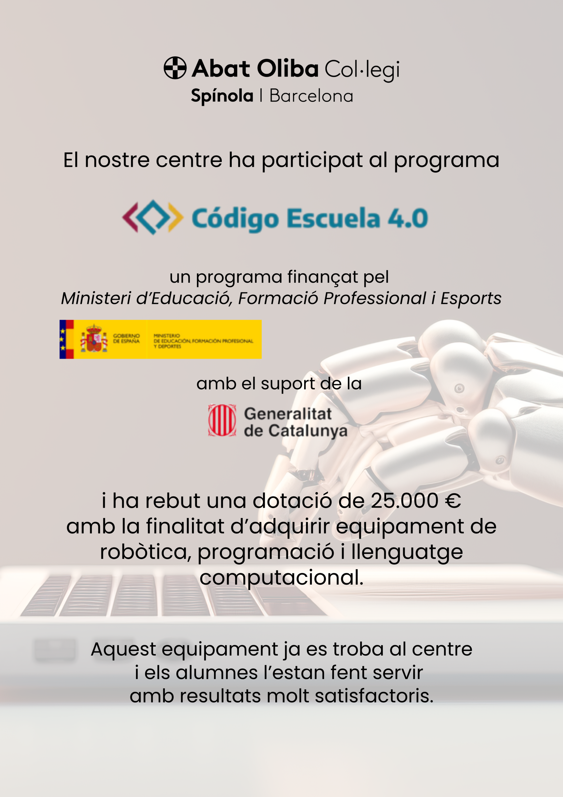 Col·legi Abat Oliba Spínola. Oferim un ensenyament basat en les virtuts cristianes i fomentem en els nostres alumnes un compromís amb la societat.
