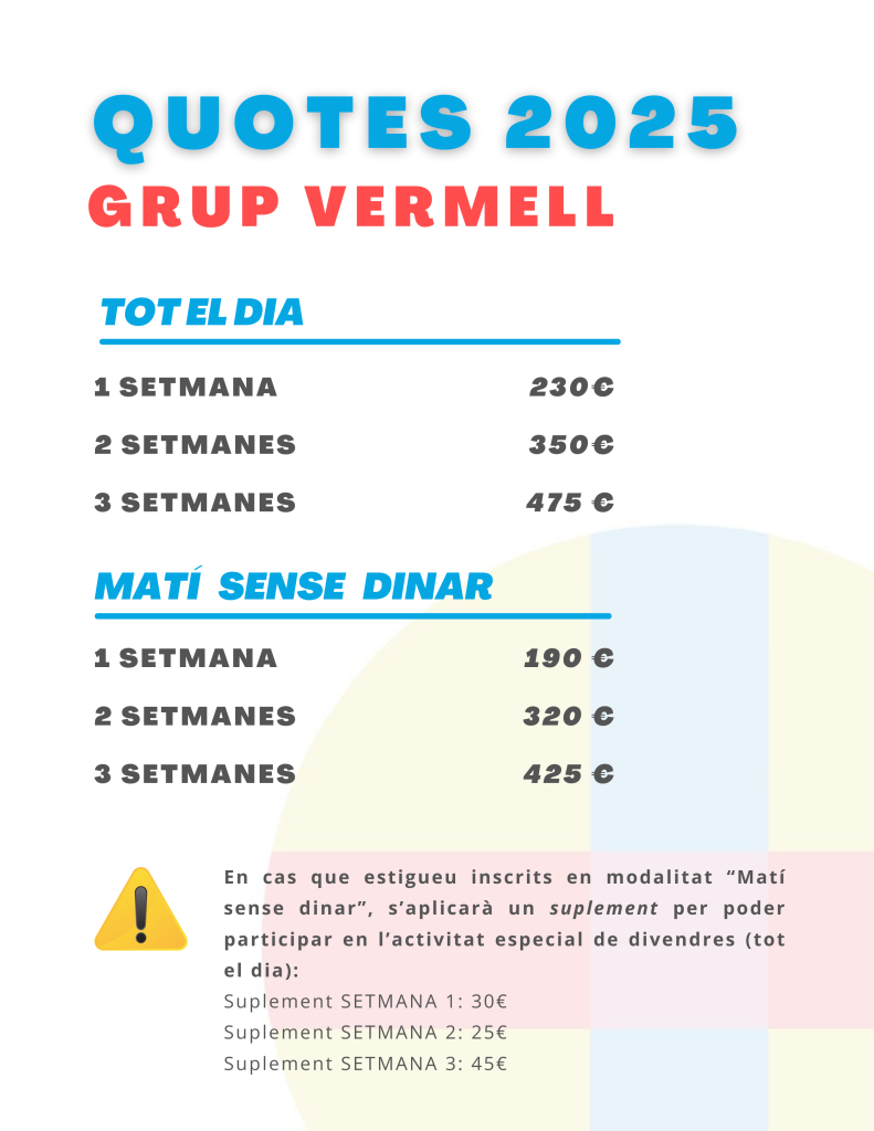 A continuació, us detallem els preus segons el nombre de setmanes a les que inscriviu els vostres fills/es.