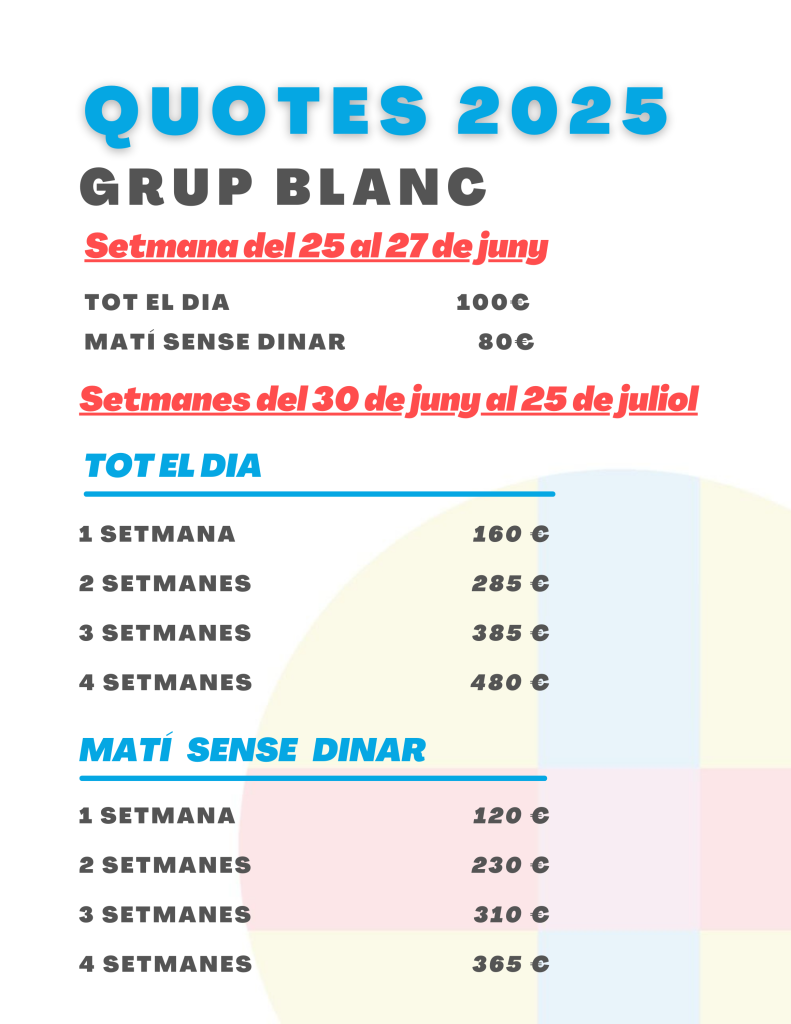 A continuació, us detallem els preus segons el nombre de setmanes a les que inscriviu els vostres fills/es.