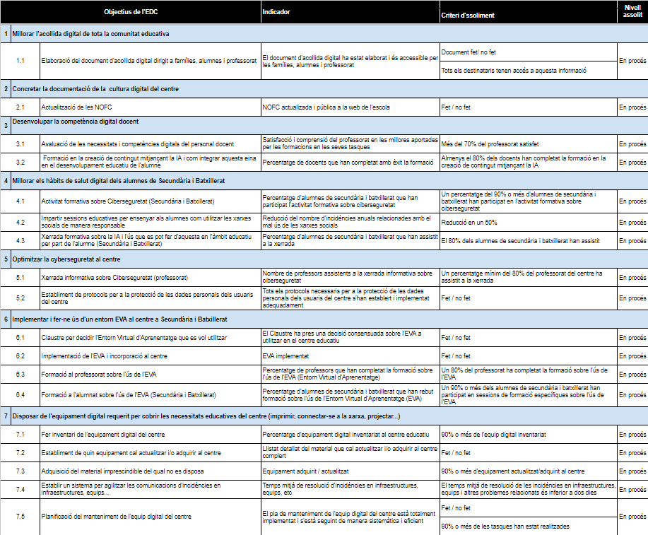 En aquesta secció, us explicarem com es mesuraran els resultats obtinguts a través de la implementació de l’EDC i com s’avaluarà el seu impacte en l’experiència educativa dels nostres alumnes i docents. La fase d’avaluació és clau per detectar les oportunitats d’optimització i millora de la implementació de l’estratègia digital de centre educatiu, i per assegurar que es compleixen els objectius establerts. Amb una avaluació rigorosa i ben planificada, podrem garantir una implementació exitosa i beneficiosa de les TIC en el nostre centre educatiu.